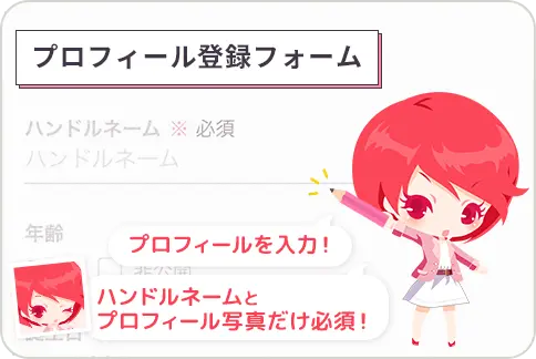 登録後、お仕事用のハンドルネームとプロフィール写真を設定するだけで配信者デビューの準備は完了です!